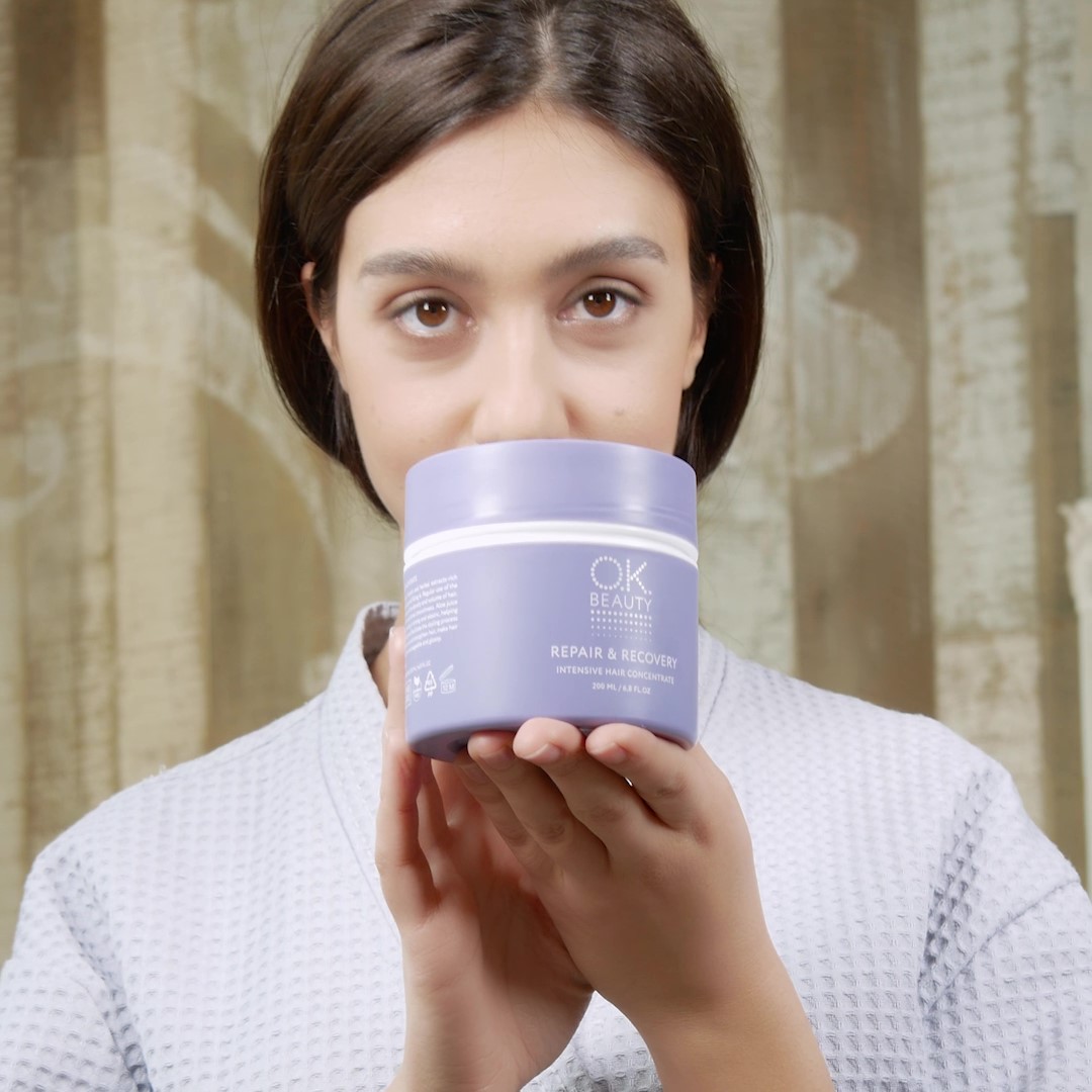 - Наносить продукт нужно только на длину волос, именно она больше всего нуждается в дополнительном питании и увлажнении. Нанесение на корни может утяжелить локоны или даже создать эффект грязных волос. А чтобы точно сохранить объем и не утяжелить волосы, советуем попробовать легкий кондиционерOK Beauty Moisturize & Volumize.